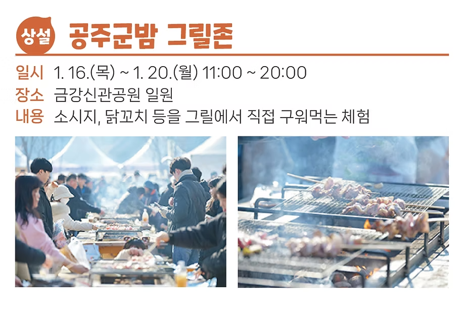 - 군밤 그릴존: 그릴을 사용해 자신만의 방식으로 군밤을 구워 먹는 재미!