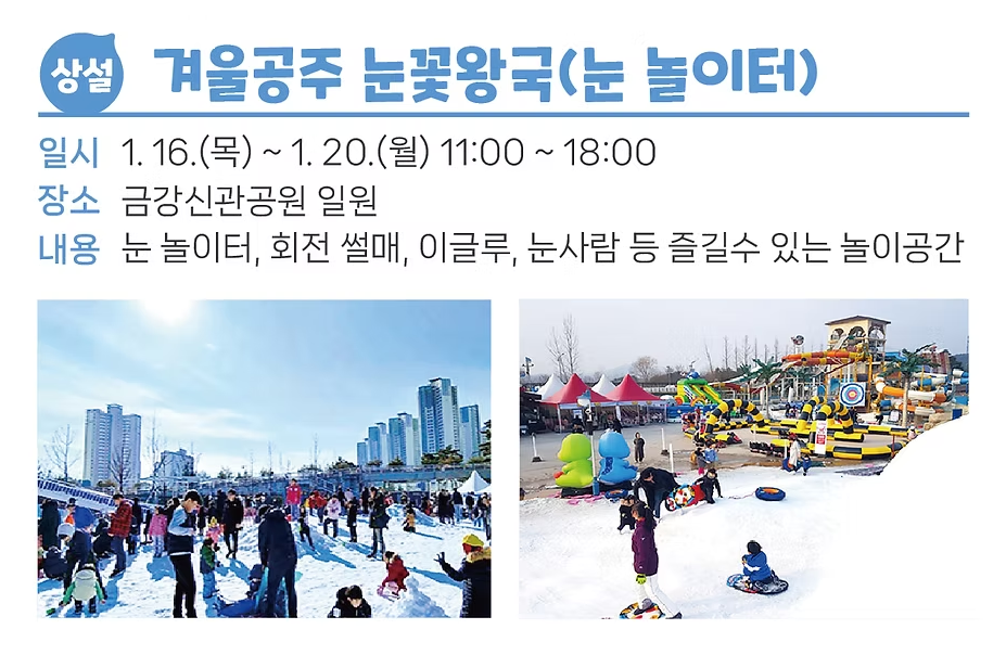- 눈 놀이터: 눈썰매, 눈싸움을 즐길 수 있는 대형 놀이터
