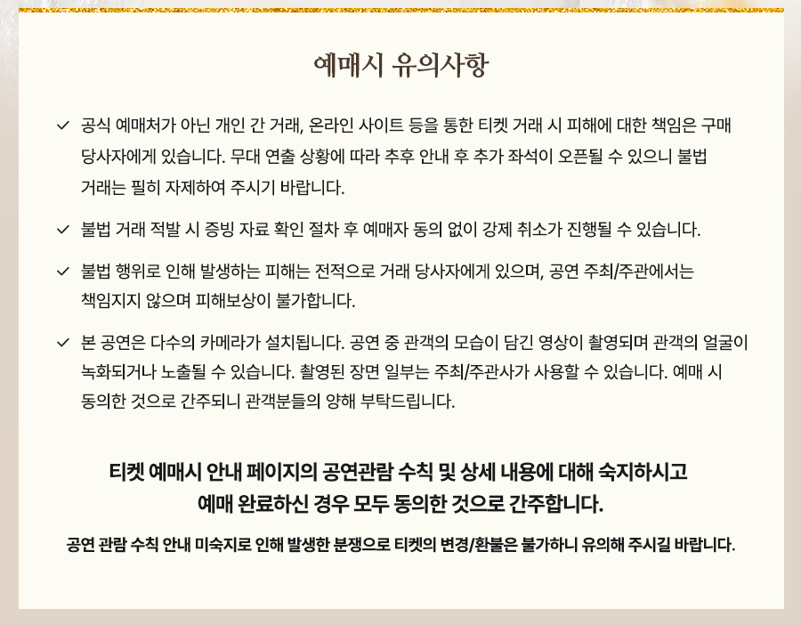 - 정식 채널 이용: 안전하게 예매하려면 공식 사이트를 이용하세요.