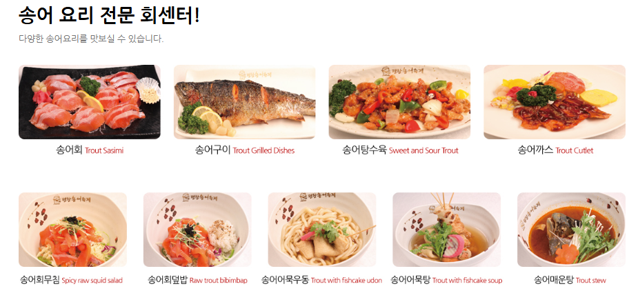 - 회센터: 갓 잡은 신선한 송어로 만든 회를 즉석에서 맛볼 수 있는 인기 코너입니다.