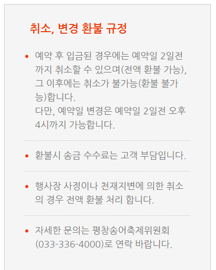 - 먹거리촌: 송어 요리뿐만 아니라 평창의 다양한 특산물을 맛볼 수 있는 먹거리촌이 운영됩니다.