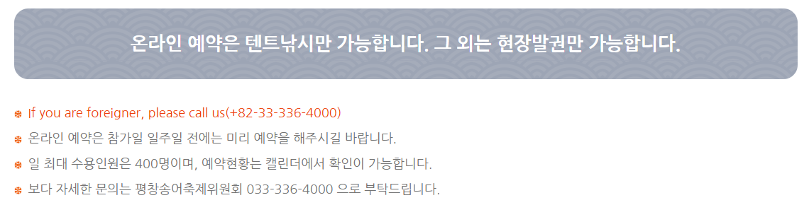 - 카메라 필수: 평창의 아름다운 설경과 축제의 활기찬 분위기를 남겨보세요.